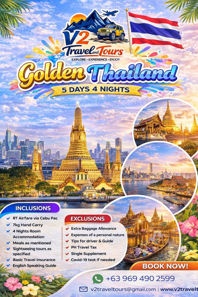 EXCELLENT Based on 5 reviews Posted on Edmon CaldeaTrustindex verifies that the original source of the review is Google. Super satisfied client here! 🙌✨ Just want to share my great experience with V2 Travel and Tours. From start to finish, sobrang smooth ng process—very accommodating, responsive, and professional talaga sila. What I really appreciate is their **legitimacy**. Hindi ka kakabahan kasi they provide complete details, clear communication, and transparent transactions. Ramdam mo na trusted and reliable yung service nila 💯 If you’re planning to travel and want hassle-free experience, highly recommended ko sila! Thank you V2 Travel and Tours for making everything easy and stress-free! ✈️💙Posted on Online gamingTrustindex verifies that the original source of the review is Google. Thankyou so much V2 travel ihave minimal problem when I book my flight going to Malaysia before I have only few minutes before my departure thankyou for saving me for quick response for my question and tips before and after my flight. Any way that's my first international travel. ❤️ Never forget that Highly recommend Travel Agency I had so far! Thank you sir Kim! ❤️❤️❤️🙏😇 Until my next flight again.Posted on Faizan KhanTrustindex verifies that the original source of the review is Google. Highly Recommended Travel Agency! We recently booked our Pakistan tour through V2 Travel and Tours, and it was an incredible experience from start to finish. The trip was very well organized, and the team made sure everything went smoothly. We had the chance to explore amazing destinations such as Islamabad and Lahore, and visiting the historical Badshahi Mosque was one of the highlights of our journey. The culture, food, and hospitality in Pakistan were truly unforgettable. The itinerary was perfectly arranged, and the support we received during the trip was excellent. We highly recommend V2 Travel and Tours to anyone looking for a reliable travel agency for international tours.Posted on Shukla ak entertainmentTrustindex verifies that the original source of the review is Google. I had a great experience with V2 Travel and Tours. The service was very professional, responsive, and reliable. They assisted me with travel planning and made the whole process smooth and stress-free. What I liked most is their quick communication and willingness to customize travel packages based on the client’s needs. Everything was explained clearly, including the itinerary and inclusions. If you are looking for a trusted travel consultant for international tours, I highly recommend V2 Travel and Tours. Excellent service and very helpful from start to finish!Posted on Kim CabellezaTrustindex verifies that the original source of the review is Google. Thank you for trusting V2 Travel and Tours by KSC. We are committed to making every trip smooth, affordable, and memorable for our clients. ✈️